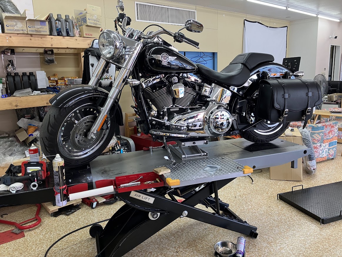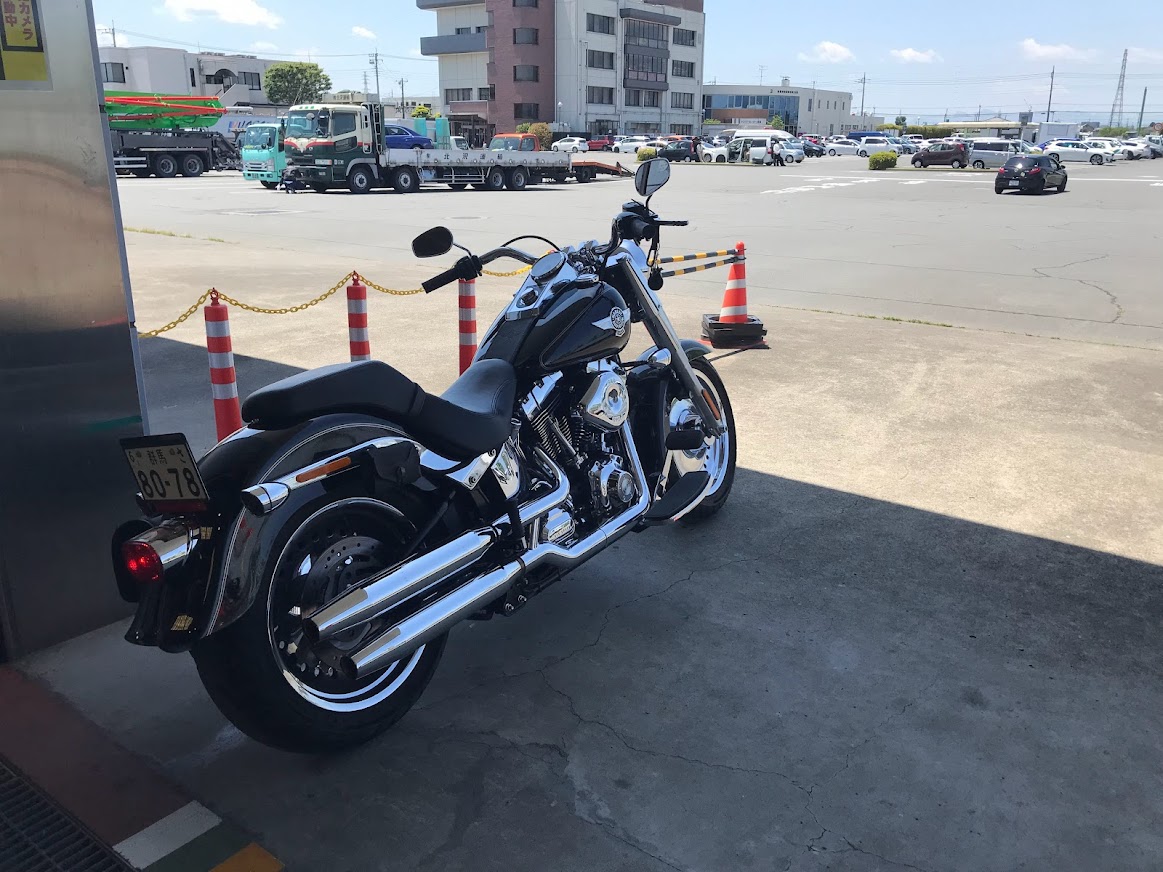 先日、近所のお客様よりご依頼を頂きハーレー・ファットボーイのバイクユーザー車検に行ってきました。