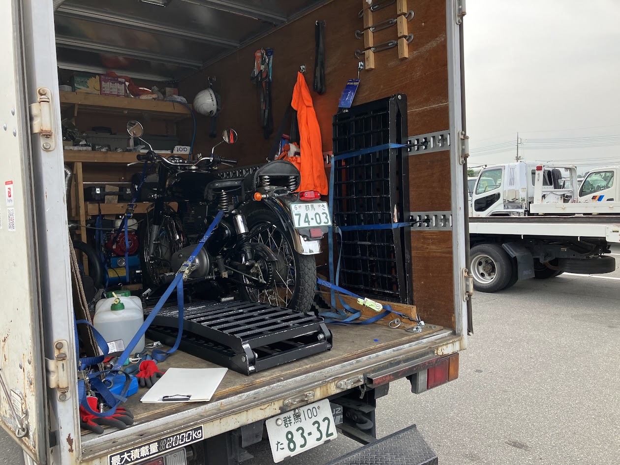 バイク車検でもバイクのタイヤ交換でもトラックによる回収を是非ご利用ください。
